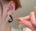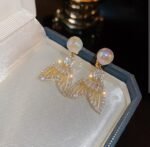 Fishtail Luxury Sparkling Crystal Rhinestones Golden Zircon Pearl Earrings for Women Girls Stylish and chic decorations for you, make you more charm and elegant. Nice gift for your friends or lover Colour | Golden