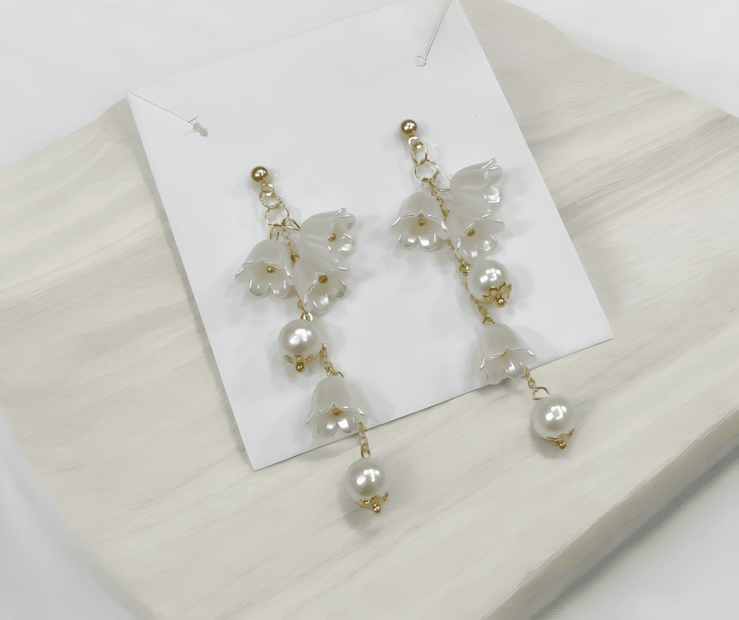 Pearl Korean Flower Earrings for Women – Elegant White Floral Design with Classic Pearl Detailing | Stylish Fashion Jewelry for Parties, Weddings, and Daily Wear | AWJ-998
