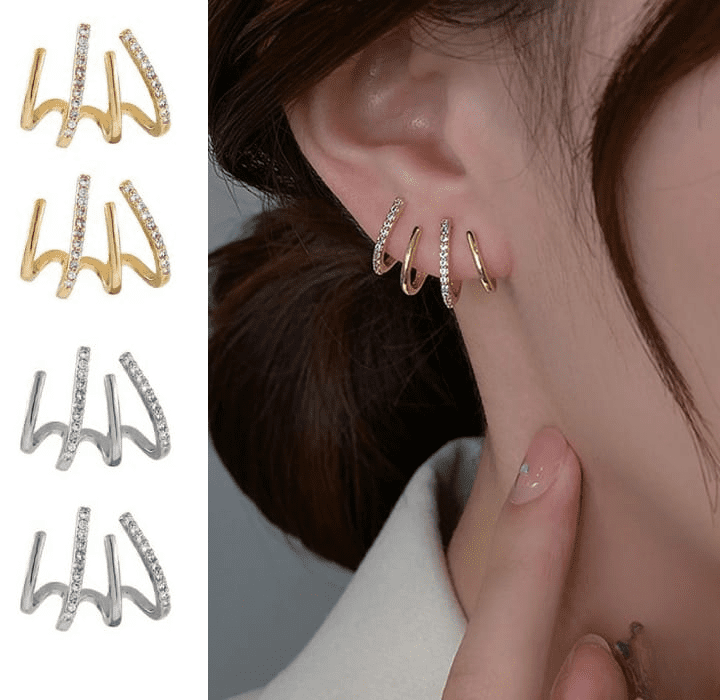 W Shape Zircon Korean Earring Cuff Earrings that